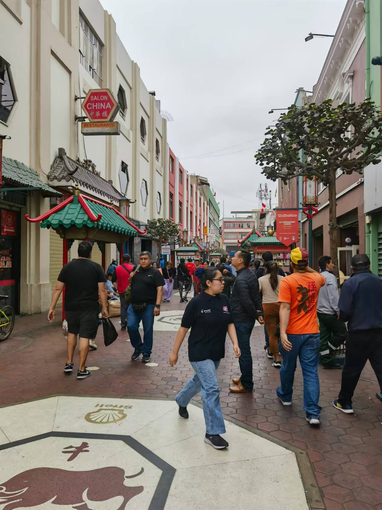 秘魯首都利馬市中心的唐人街上,人頭攢動,大量的當地民眾到當地休閑購物。這里的中國元素也是處處可見。