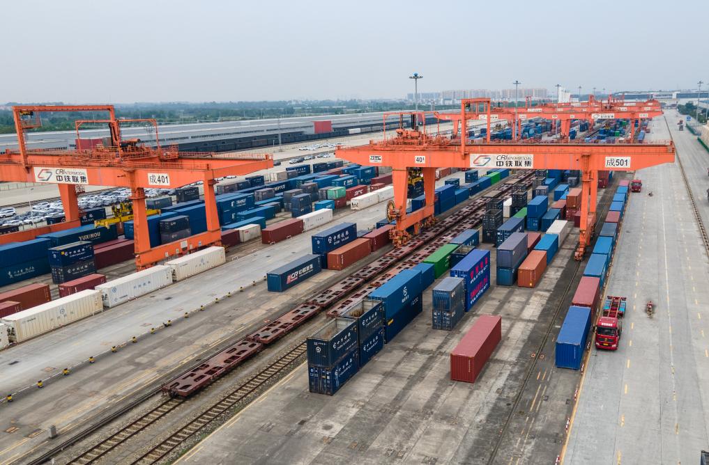 中國(四川)自由貿(mào)易試驗區(qū)成都青白江鐵路港片區(qū)(2024年6月13日攝,無人機照片)。新華社記者 唐文豪 攝