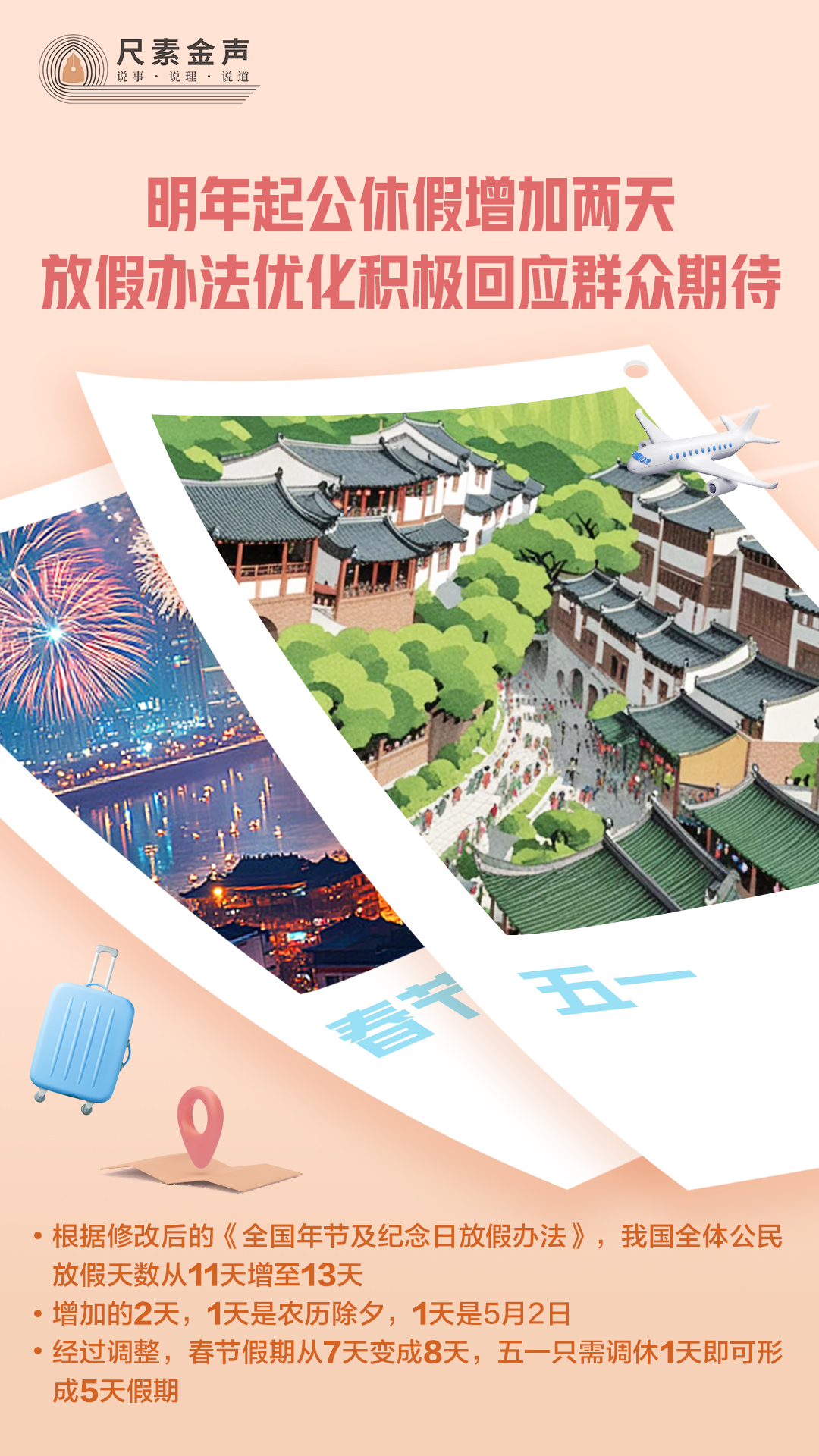 近日,國務(wù)院公布《關(guān)于修改<全國年節(jié)及紀(jì)念日放假辦法>的決定》,并公布2025年部分節(jié)假日安排?!懊磕甓喾艃商旒佟薄白ゾo買好機(jī)票準(zhǔn)備出游”……消息剛一發(fā)布,便受廣泛關(guān)注。