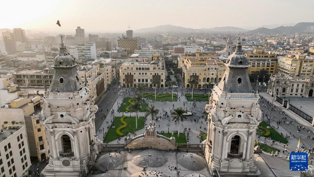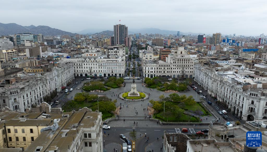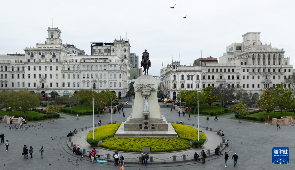 這是11月7日拍攝的秘魯首都利馬老城的圣馬丁廣場(chǎng)(無(wú)人機(jī)照片)。