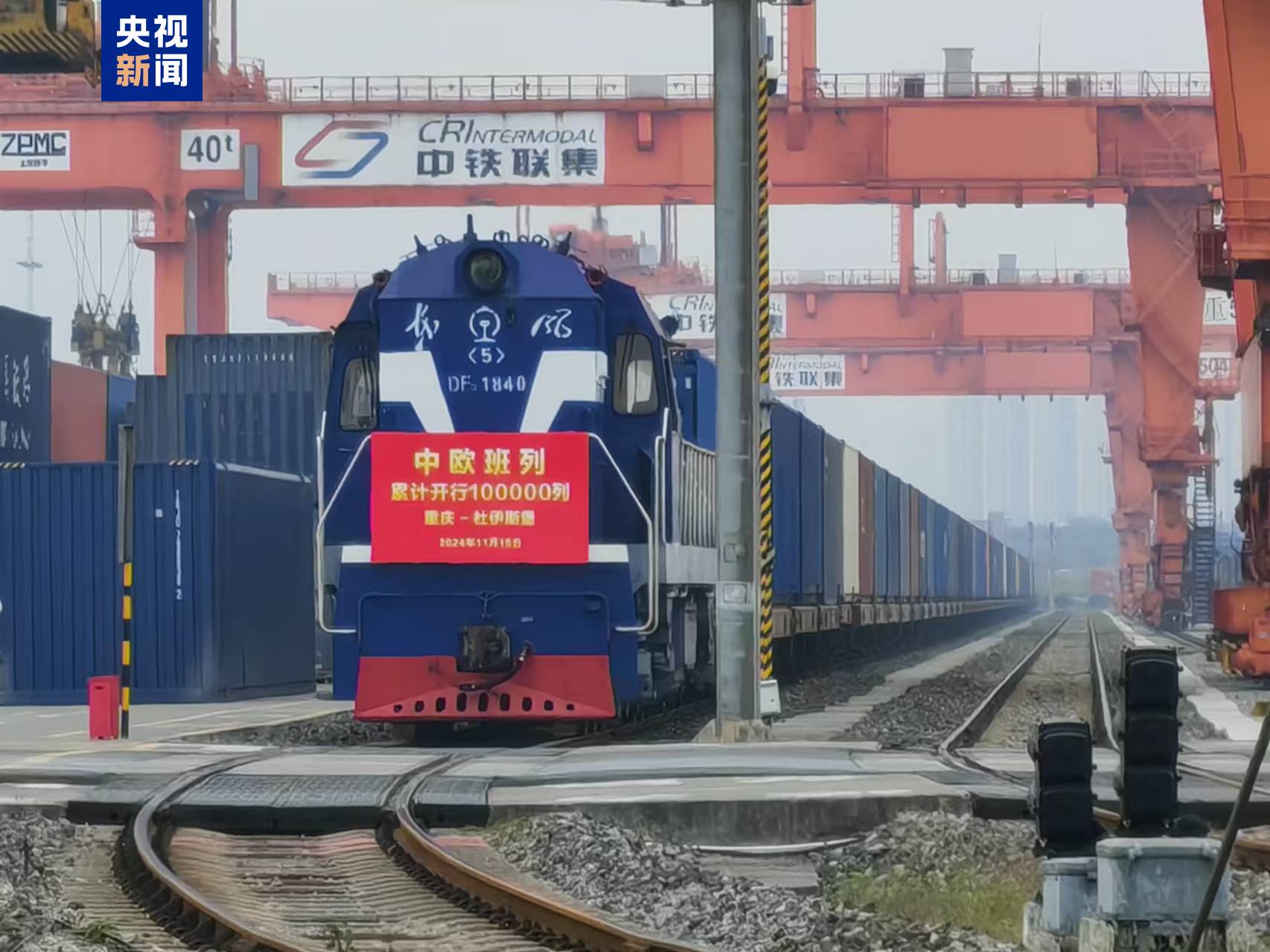 記者從中國國家鐵路集團有限公司獲悉,2024年11月15日10時20分,隨著X8083次中歐班列(重慶—杜伊斯堡)從重慶團結(jié)村站開出,中歐班列累計開行突破10萬列,發(fā)送貨物超1100萬標箱、貨值超4200億美元,保持安全穩(wěn)定暢通運行,標志著中歐班列高質(zhì)量發(fā)展取得新成效。