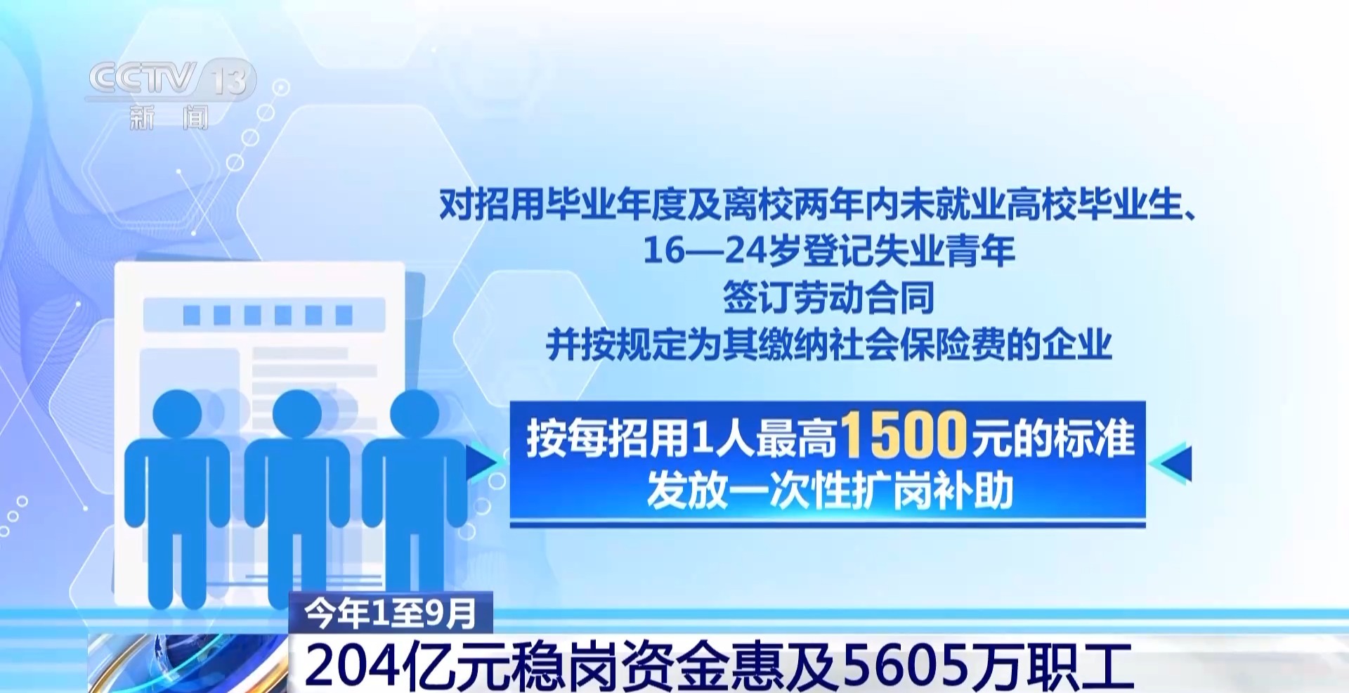 對招用畢業(yè)年度及離校兩年內(nèi)未就業(yè)高校畢業(yè)生、16到24歲登記失業(yè)青年,簽訂勞動合同,并按規(guī)定為其繳納社會保險(xiǎn)費(fèi)的企業(yè),按每招用1人最高1500元的標(biāo)準(zhǔn)發(fā)放一次性擴(kuò)崗補(bǔ)助,今年以來已向17萬戶企業(yè)發(fā)放9億元,惠及62萬高校畢業(yè)生等青年群體。