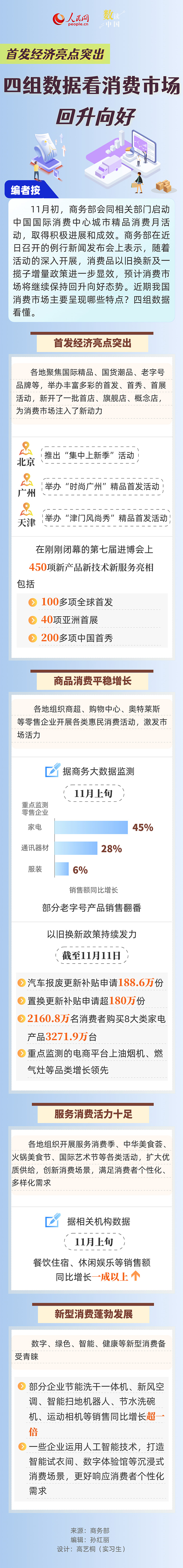 數(shù)讀中國(guó)|首發(fā)經(jīng)濟(jì)亮點(diǎn)突出 四組數(shù)據(jù)看消費(fèi)市場(chǎng)回升向好