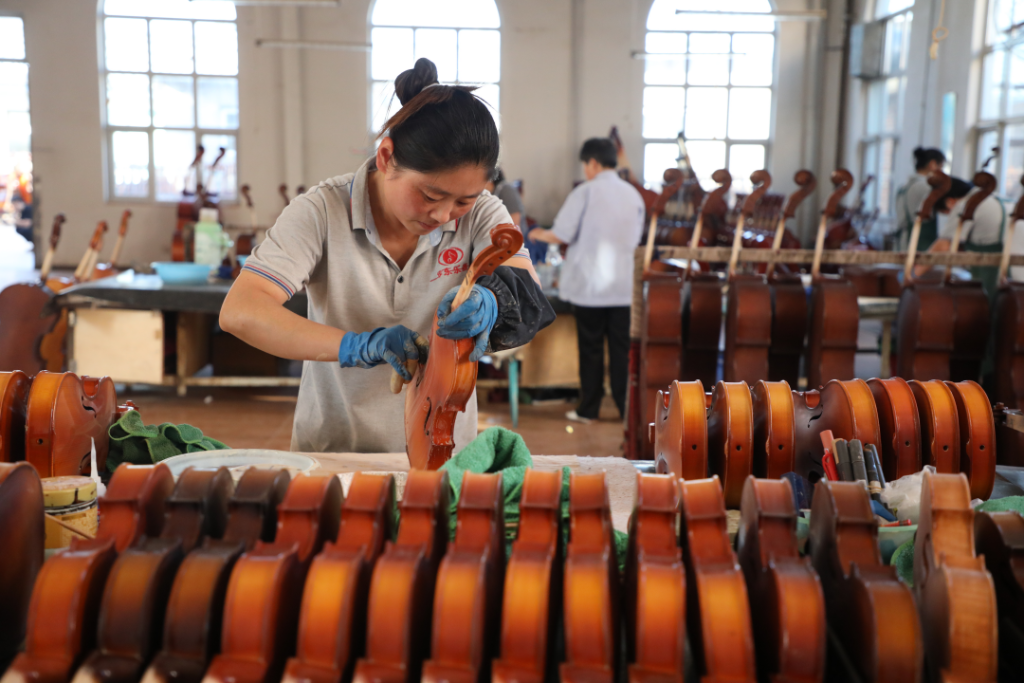高峰時(shí)節(jié),東高村鎮(zhèn)每年生產(chǎn)的提琴達(dá)30萬(wàn)支,約占全球銷量的三分之一,銷往全球40多個(gè)國(guó)家和地區(qū),年產(chǎn)值超過(guò)7000萬(wàn)元。