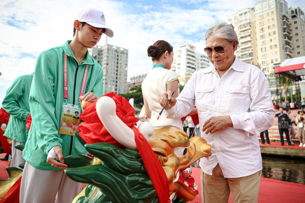 比賽開始前還舉行了龍舟巡游,巡游前的龍舟披紅點睛儀式,則既是預(yù)祝比賽順利進(jìn)行,也彰顯對龍舟賽及傳統(tǒng)文化的重視。