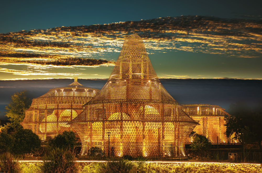 緊接著,設(shè)計(jì)師們聯(lián)手用竹子打造了一個(gè)充滿設(shè)計(jì)感的竹藝村落——龍泉國(guó)際竹建筑文創(chuàng)生活村落。