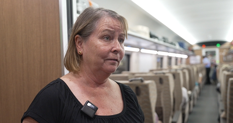 黃復(fù)勝:“我感覺(jué)坐了這個(gè)火車(chē),覺(jué)得很舒服,然后很快就可以進(jìn)火車(chē),check in(進(jìn)站)和 check out(出站)都是很方便的?!?/p>