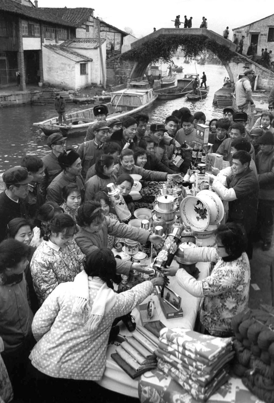1966年春節(jié),江蘇南京市民在夫子廟選購花燈。 新華社記者 汪文華 攝