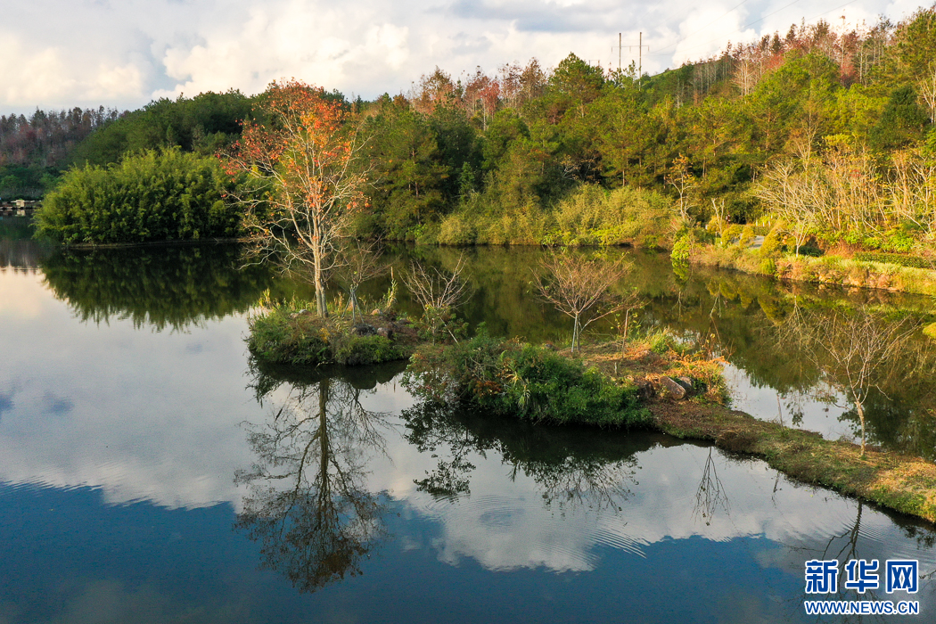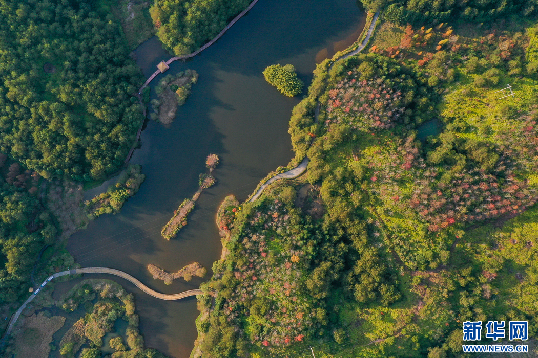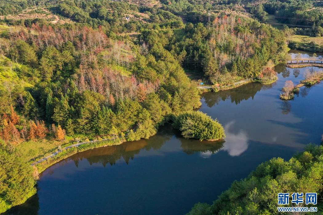 長(zhǎng)汀縣水土保持科教園地處河田鎮(zhèn)露湖村,是福建省面積最大的水土保持科教基地(無人機(jī)照片)。新華網(wǎng) 肖和勇 攝
