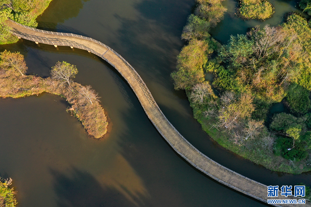 這是長(zhǎng)汀汀江國(guó)家濕地公園冬日景觀。如今這里是國(guó)家4A級(jí)旅游景區(qū)。經(jīng)過30多年的生態(tài)治理,昔日水土流失重災(zāi)區(qū)已成為風(fēng)光秀麗、林果連片的生態(tài)旅游勝地(無人機(jī)照片)。新華網(wǎng) 肖和勇 攝