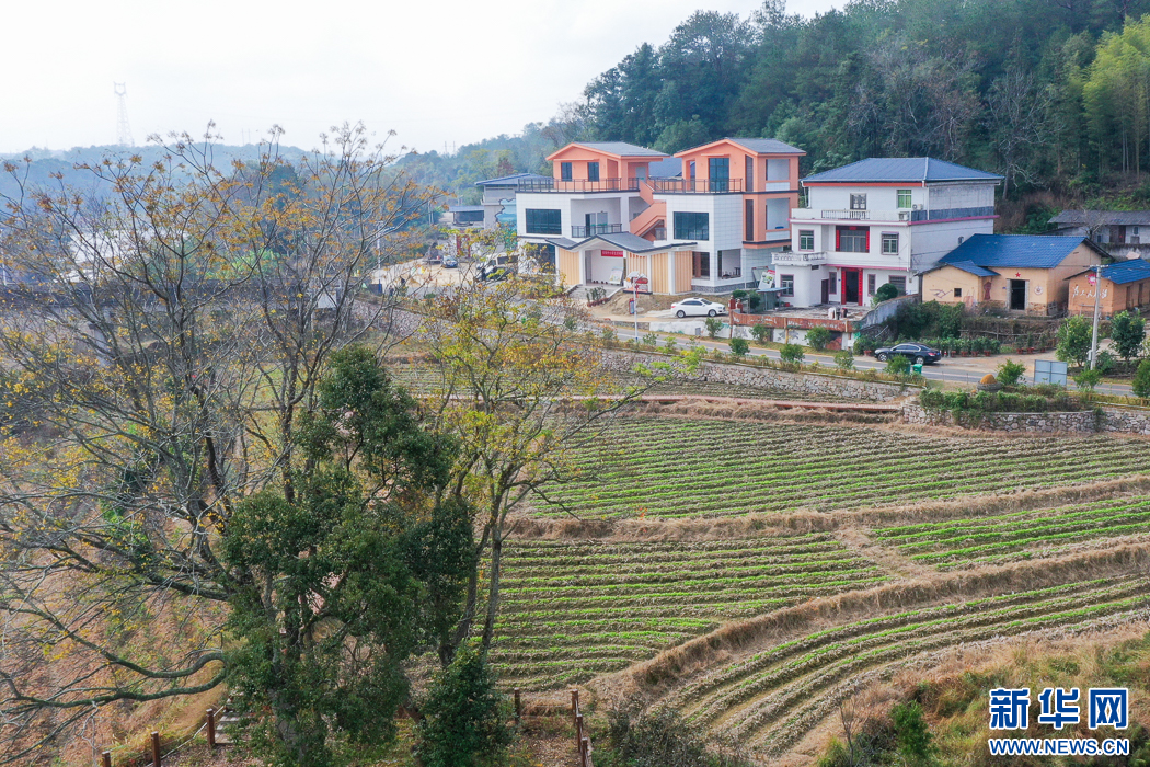 這是在長(zhǎng)汀縣河田鎮(zhèn)南塘村拍攝到的美麗庭院與農(nóng)田風(fēng)光(無人機(jī)照片)。新華網(wǎng) 肖和勇 攝