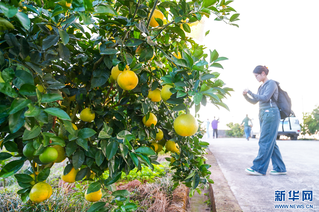 長(zhǎng)汀縣三洲鎮(zhèn)豐盈美麗生態(tài)農(nóng)場(chǎng),豐收的果實(shí)掛滿枝頭。新華網(wǎng) 肖和勇 攝