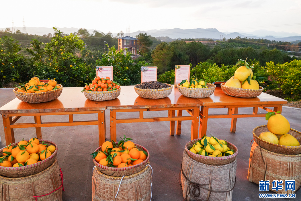 長(zhǎng)汀縣三洲鎮(zhèn)豐盈美麗生態(tài)農(nóng)場(chǎng)面積3200多畝,已種植36個(gè)果樹品種,這是當(dāng)季水果展示。新華網(wǎng) 肖和勇 攝