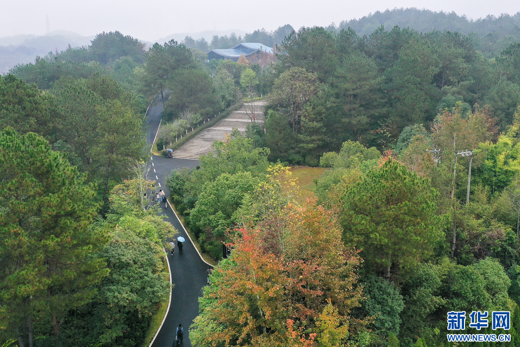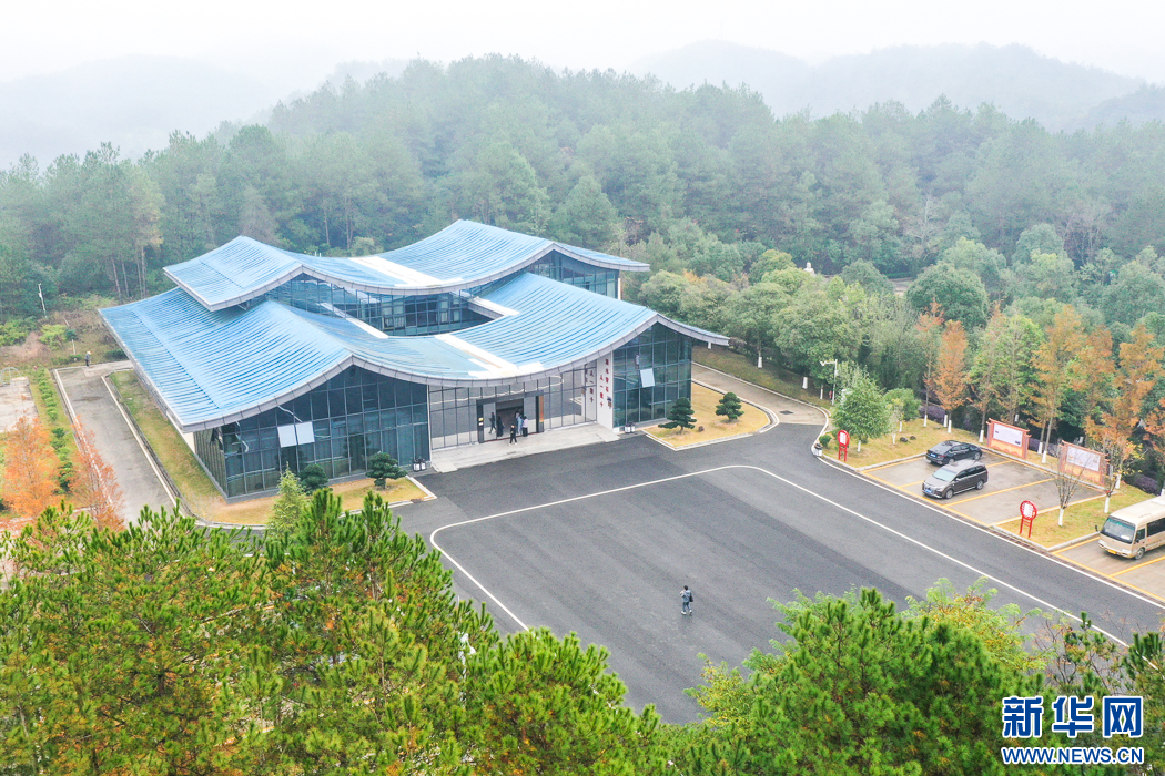 這是長(zhǎng)汀縣水土保持科教園里的“中國(guó)·長(zhǎng)汀水土保持科教館”,這個(gè)科教園是福建省面積最大的水土保持科教基地(無人機(jī)照片)。新華網(wǎng) 肖和勇 攝