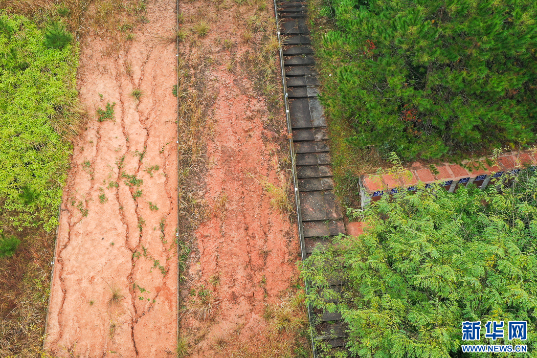 長(zhǎng)汀縣水土保持科教園里的崩崗實(shí)驗(yàn)對(duì)照區(qū)(無人機(jī)照片)。新華網(wǎng) 肖和勇 攝