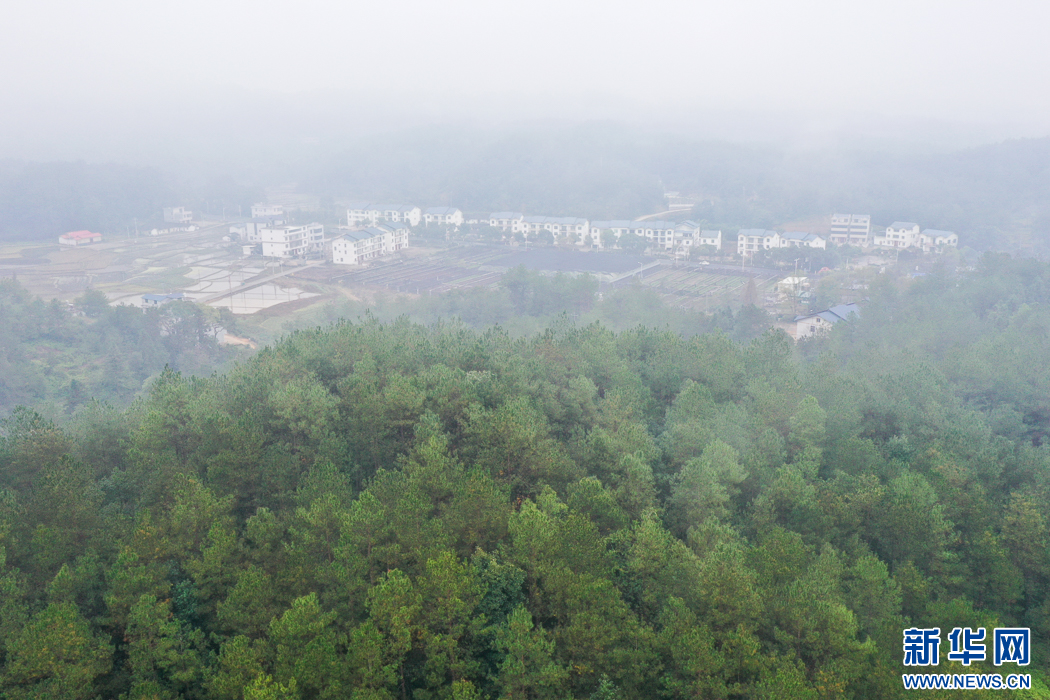 這是在長(zhǎng)汀縣水土保持科教園附近拍攝到的鄉(xiāng)村冬日景觀。晨霧中,綠色森林環(huán)抱美麗鄉(xiāng)村(無人機(jī)照片)。新華網(wǎng) 肖和勇 攝