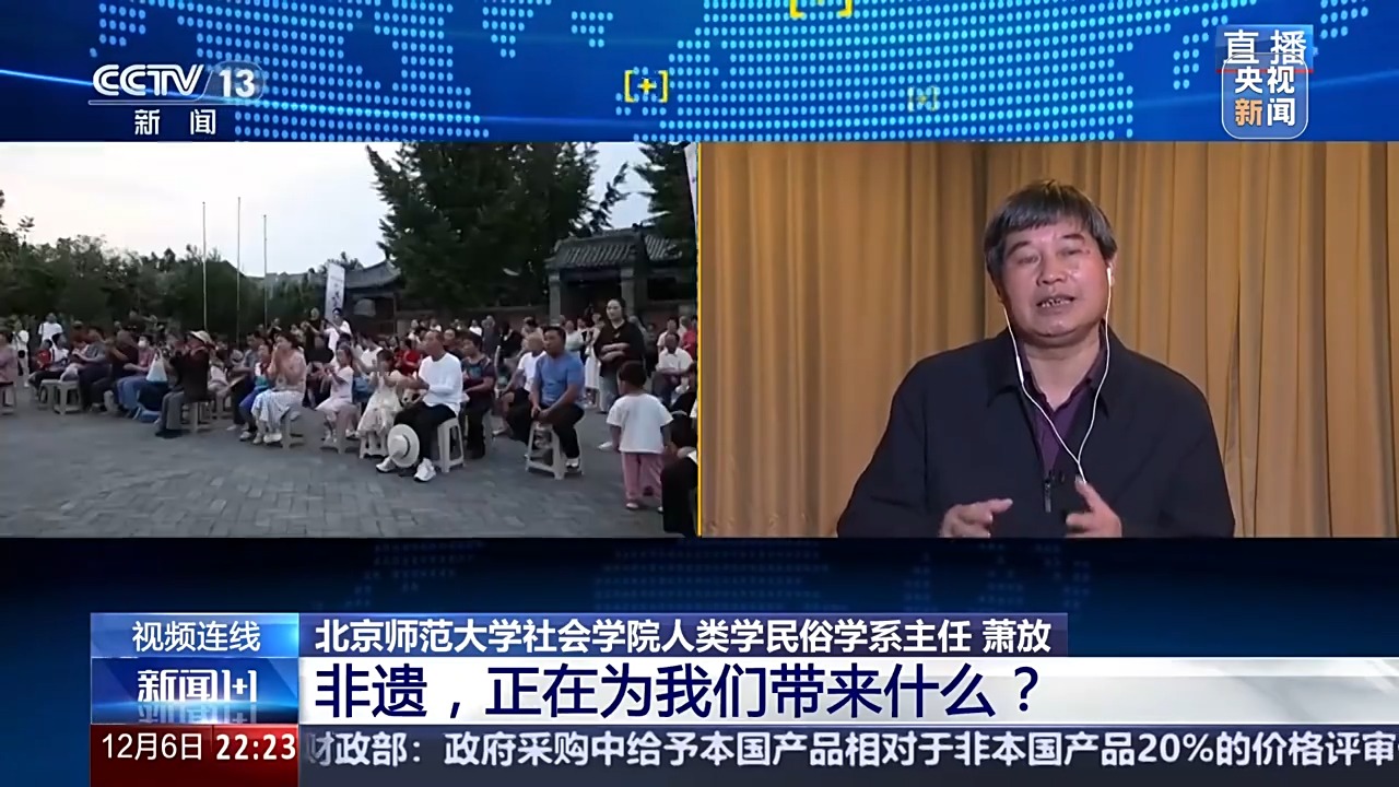 北京師范大學社會學院人類學民俗學系主任 蕭放:春節(jié)就是大年,大年是年年過,當然年年都過得喜慶熱鬧,今年因為是成為人類非遺之后的第一個春節(jié),當然我們就過得更加熱鬧,更加紅火,更加喜慶。但如何讓我們熱鬧、喜慶、紅火實現(xiàn)呢?就需要我們更多的人自覺地去參與這個年節(jié)活動,或者各個地方政府創(chuàng)造條件,讓我們年節(jié)的氛圍更加濃郁,讓我們年節(jié)喜悅的氣氛更加熱烈,然后我們可能說既然是人類非遺之后的第一個春節(jié),我們是不是有更多的傳統(tǒng)熱鬧的方式,能夠讓我們進行呢,我想這是我們地方政府管理部門可以考慮的問題。