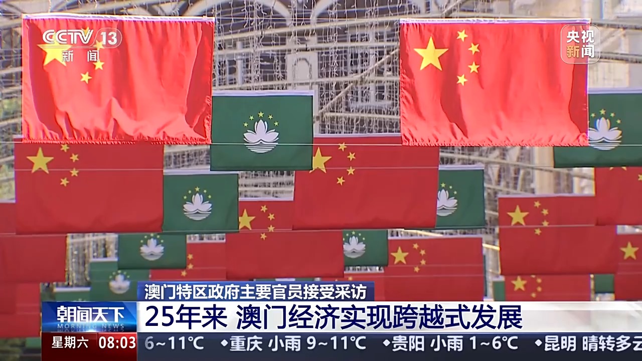 澳門(mén)回歸祖國(guó)25年來(lái),向世界展示了具有澳門(mén)特色“一國(guó)兩制”的成功實(shí)踐。澳門(mén)特區(qū)政府主要官員近日接受記者采訪時(shí)表示,25年來(lái),澳門(mén)經(jīng)濟(jì)快速增長(zhǎng)、民生持續(xù)改善,在融入國(guó)家發(fā)展大局的進(jìn)程中,澳門(mén)也迎來(lái)愈加廣闊的發(fā)展天地。