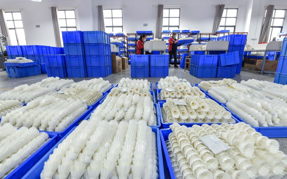 在貴州大桐利體育用品有限公司生產(chǎn)車間,110多名工人正在操作全新的生產(chǎn)設(shè)備趕制訂單。“羽毛球運動持續(xù)火熱,我們廠房面積由原來的7000平方米,擴大到了現(xiàn)在的2萬平方米。”公司負責人張偉平說,公司主要生產(chǎn)高端羽毛球,80%的產(chǎn)品用于出口,主要銷往馬來西亞、泰國、英國等國家和地區(qū)。