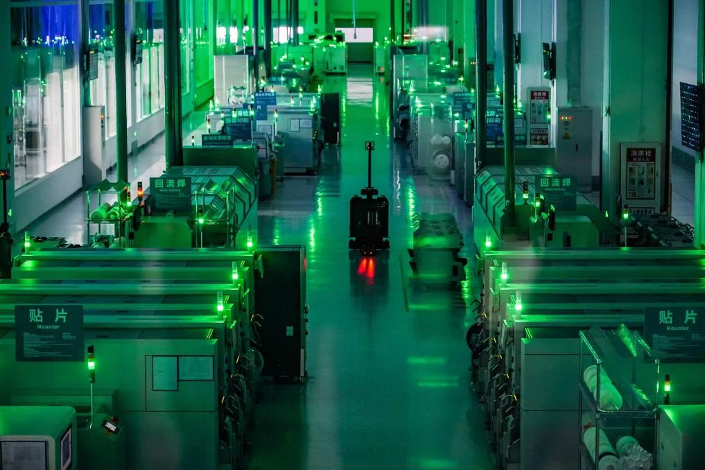 無(wú)數(shù)綠燈依次閃爍,少量工人巡檢其間……在這座達(dá)到業(yè)界標(biāo)桿水平的零碳智造工廠,“黑燈”模式下運(yùn)作的電腦主板生產(chǎn)線繁忙卻有序?!拔覀兓凇恕叀啤W(wǎng)—智’新IT技術(shù)架構(gòu),使生產(chǎn)效率提升200%。猜猜看,現(xiàn)在下線一塊主板、一臺(tái)筆記本能有多快?”聯(lián)想天津工廠廠長(zhǎng)于小建給出的答案是,“9秒!”