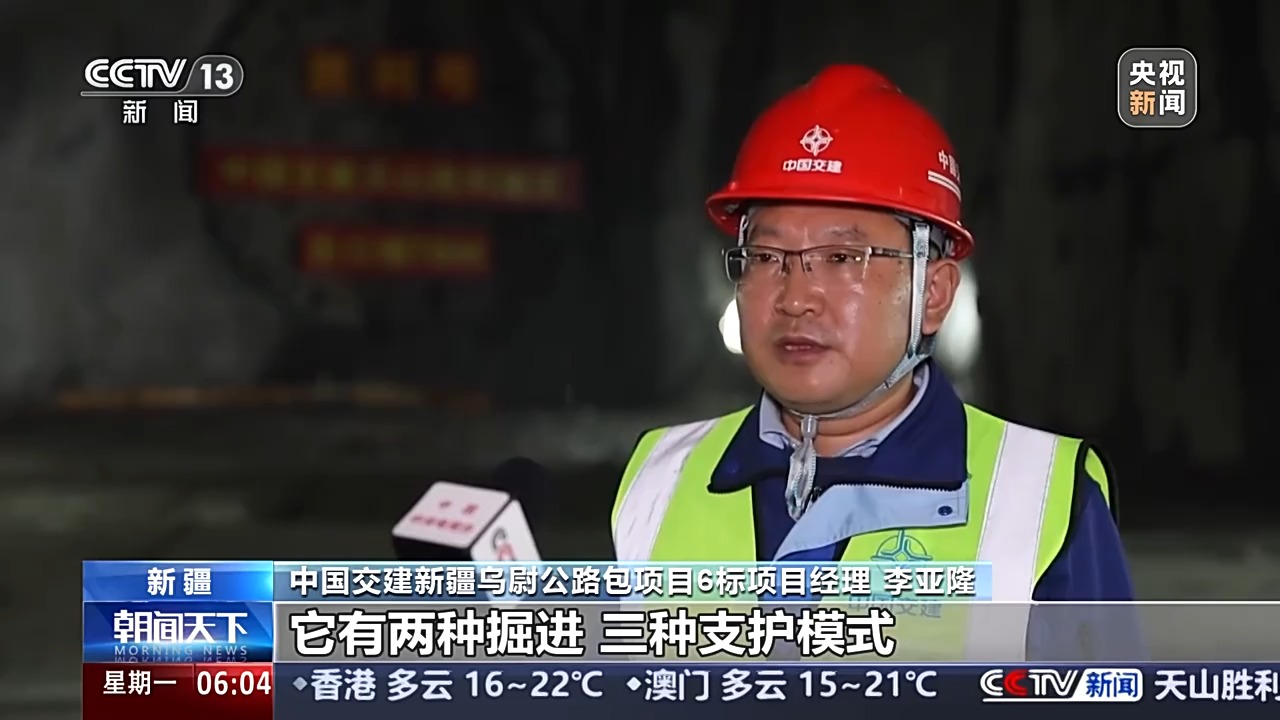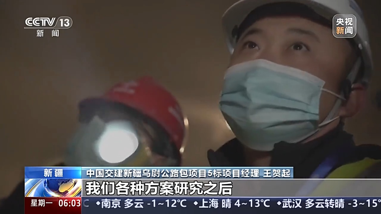 中國交建新疆烏尉公路包項目5標(biāo)項目經(jīng)理 王賀起:我們各種方案研究之后,就想如果在兩個主洞之間加一條服務(wù)隧道,這樣就把主洞分割成很多段落,增加了很多工作面。所以“三洞”加“長隧短打”是我們縮短工期的創(chuàng)意。