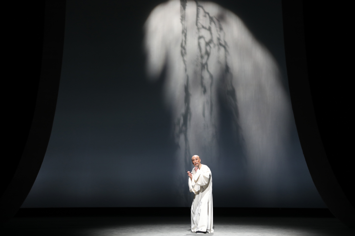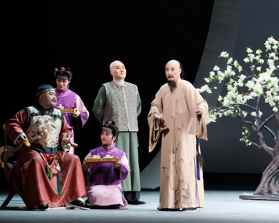 李政成的精湛表演則使創(chuàng)作完美閉環(huán)。在描繪鄭板橋繪畫菊花與蘭花的情景時,他巧妙地采用了文戲武唱的手法,別具匠心地展現(xiàn)了鄭板橋的才華與骨氣。而在劇終部分,長達(dá)十多分鐘、包含56個核心唱段的唱腔如波浪般層層推進(jìn),將鄭板橋一生的感悟推至觀眾心底。舞臺上的清冷視覺效果與演員熾熱的情感表達(dá)形成了鮮明的對比,在戲劇的張力中,一個有溫度、有深度、有情懷的鄭板橋仿佛從歷史中走來,真正“活”了起來。