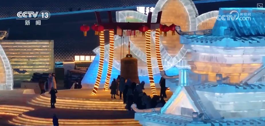 亞冬會元素冰雕 吸引中外游客“打卡”