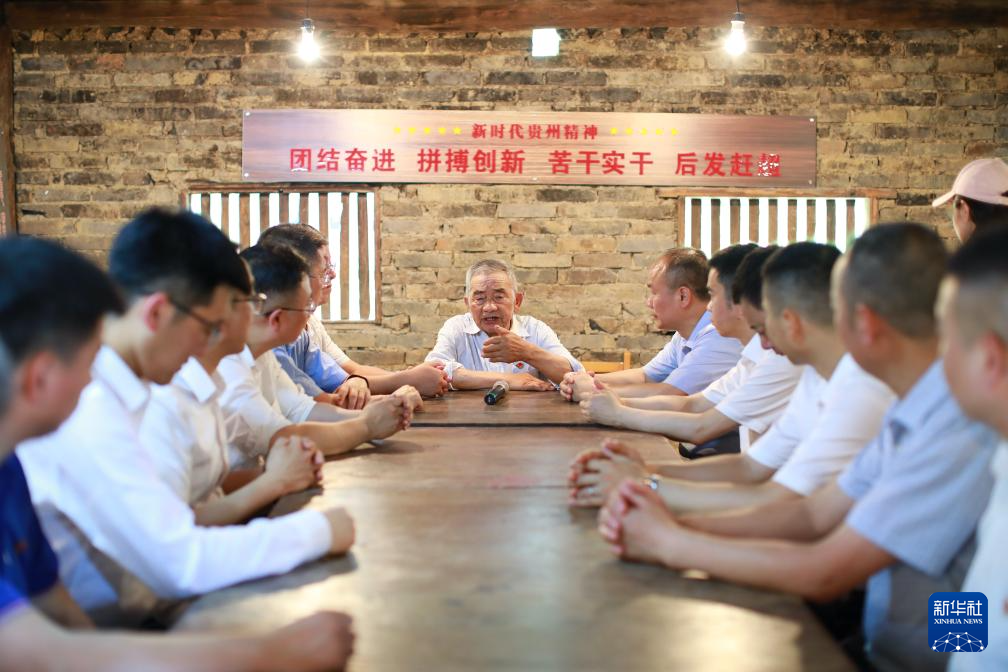黃大發(fā)為前來參加黨建活動的人們講述修渠故事(2021年6月16日攝)。新華社記者 劉續(xù) 攝