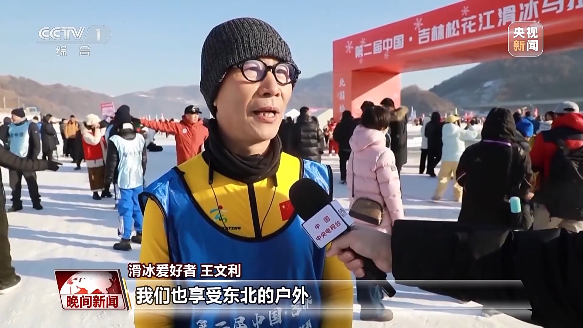 滑冰愛好者 王文利:我們也享受東北的戶外,因?yàn)椴坏綉敉饣?,就跟沒感受到過冬一樣。