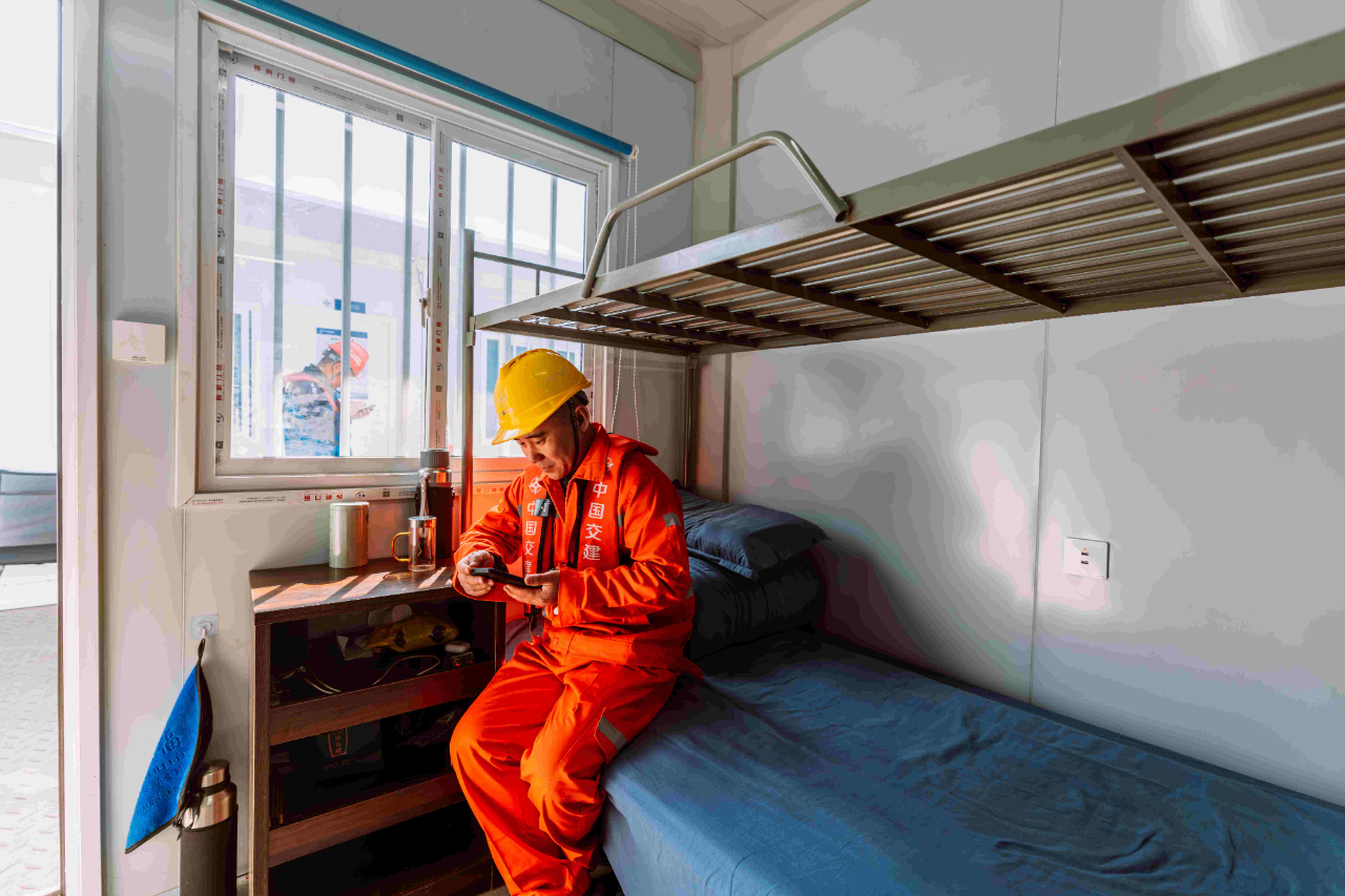梁芝敬期待著能和家人們團聚的那天,也期待著大橋建成后能帶家人來看看海面上他們建造的那座向海對岸延伸的橋。(工人日報客戶端 記者 李潤釗 出鏡 金語萱)