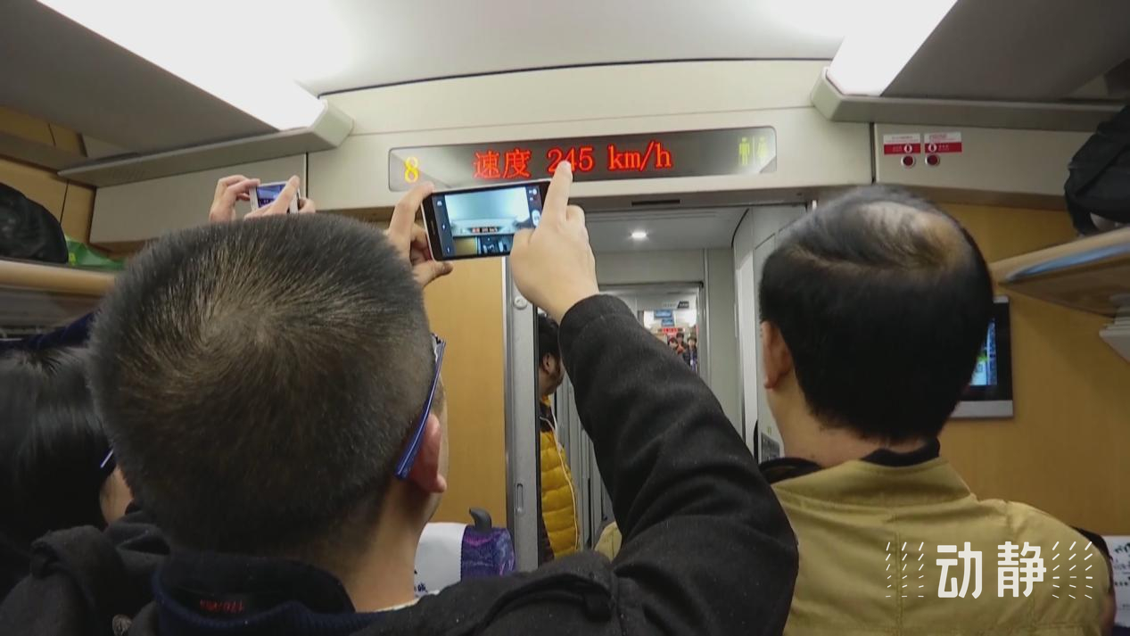 這趟列車的設(shè)計(jì)時(shí)速為250公里,開車不到10分鐘,時(shí)速就達(dá)到了245公里,乘客們紛紛用手機(jī)和相機(jī)記錄著顯示器上不斷攀升的車速。