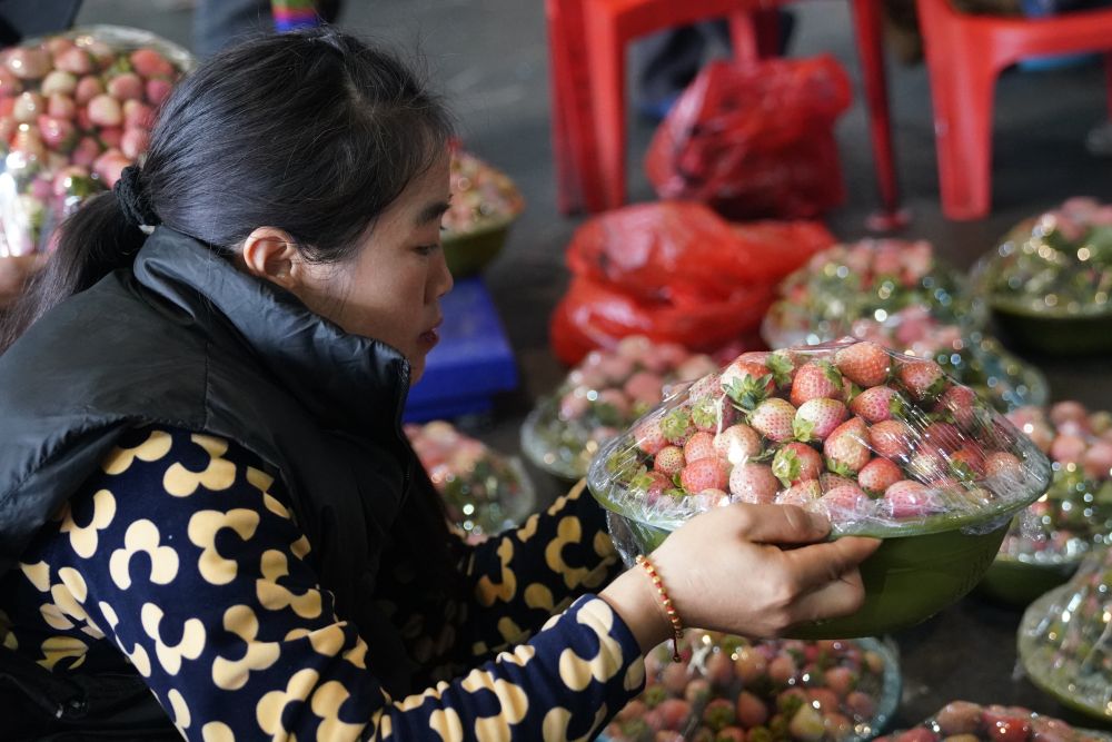 消費(fèi)者在選購(gòu)草莓。新華社記者 趙歡 攝