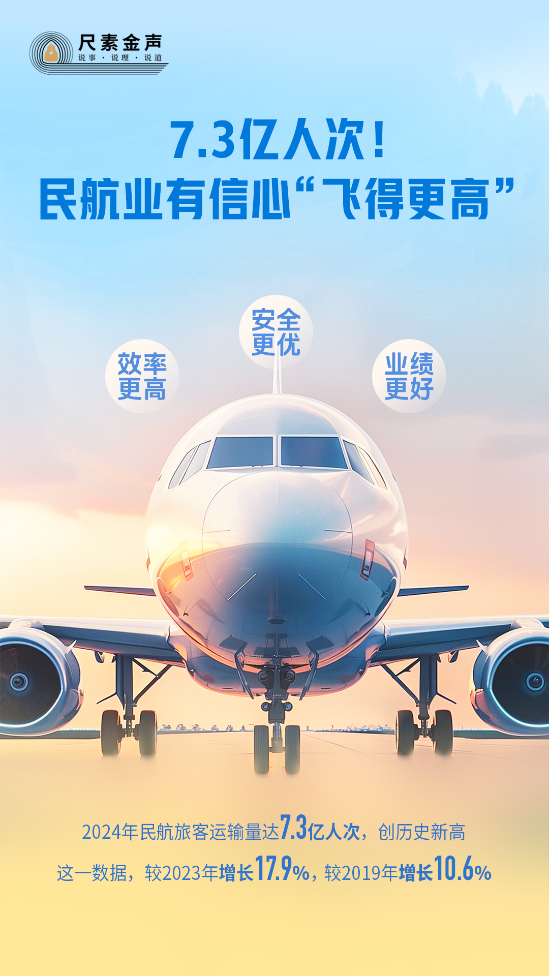 7.3億人次! 2024年民航旅客運(yùn)輸量達(dá)7.3億人次,創(chuàng)歷史新高,這一數(shù)據(jù),較2023年增長17.9%,較2019年增長10.6%。