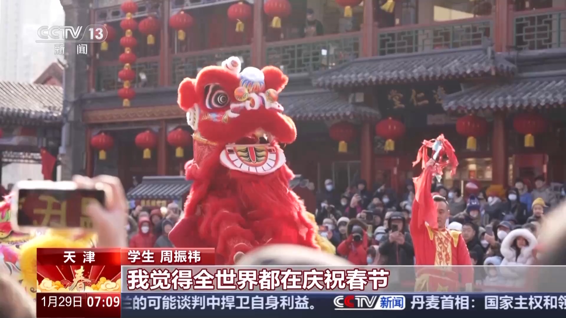 天津?qū)W生 周振祎:第一個非遺春節(jié),我覺得全世界都在慶祝春節(jié)。