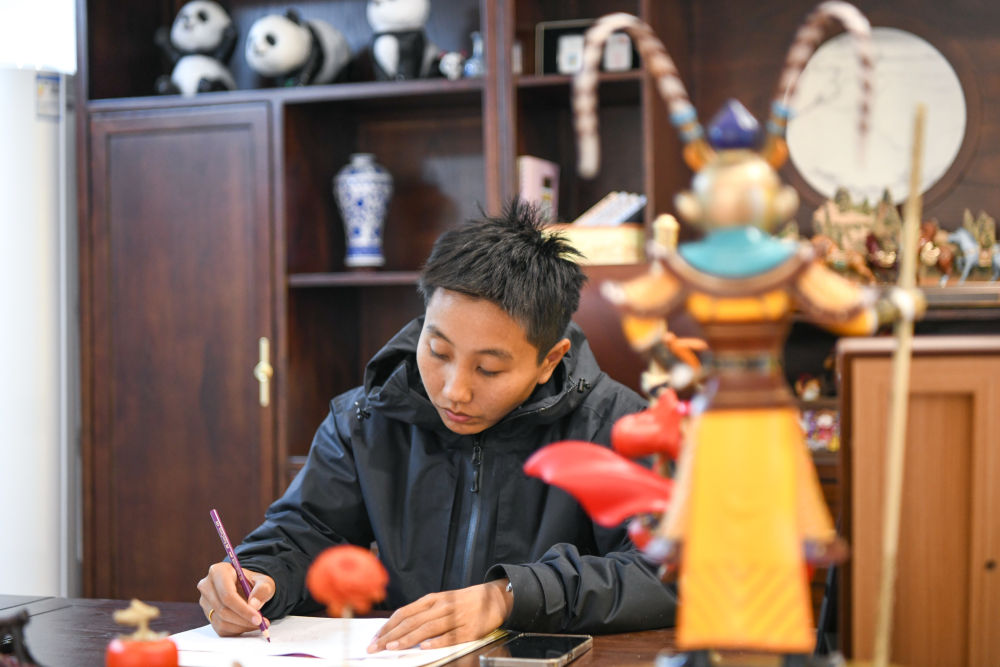 邱玥在工作室為下一個燈會項目進(jìn)行設(shè)計(1月27日攝)。