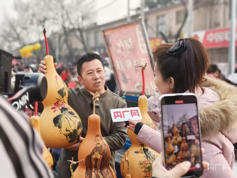 在旁邊的友誼葫蘆攤位前,形態(tài)各異、制作精致的葫蘆制品吸引了不少村民駐足觀看。山東省級(jí)非遺項(xiàng)目章丘葫蘆雕刻代表性傳承人馬友誼表示,這些葫蘆都是手工制作,每一個(gè)都有其獨(dú)特的寓意和故事,有些還登上國(guó)際舞臺(tái)進(jìn)行展示。