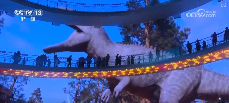 春節(jié)期間循環(huán)播放的恐龍科學(xué)藝術(shù)展、春節(jié)主題展、春節(jié)檔電影精編等“四屏聯(lián)動(dòng)”原創(chuàng)視頻,將光影資源與科教文化有機(jī)融合。特別是恐龍科學(xué)藝術(shù)展深受小朋友喜愛(ài)。展覽現(xiàn)場(chǎng),巨幅卷軸屏以直觀的方式展現(xiàn)恐龍的樣貌與龐大體型,邀請(qǐng)觀眾與這些史前巨獸“比高”。環(huán)屏則將播放引人入勝的動(dòng)畫視頻,生動(dòng)再現(xiàn)侏羅紀(jì)中期恐龍的生活場(chǎng)景,讓觀眾仿佛可以跟隨恐龍的步伐,重返遠(yuǎn)古世界。
