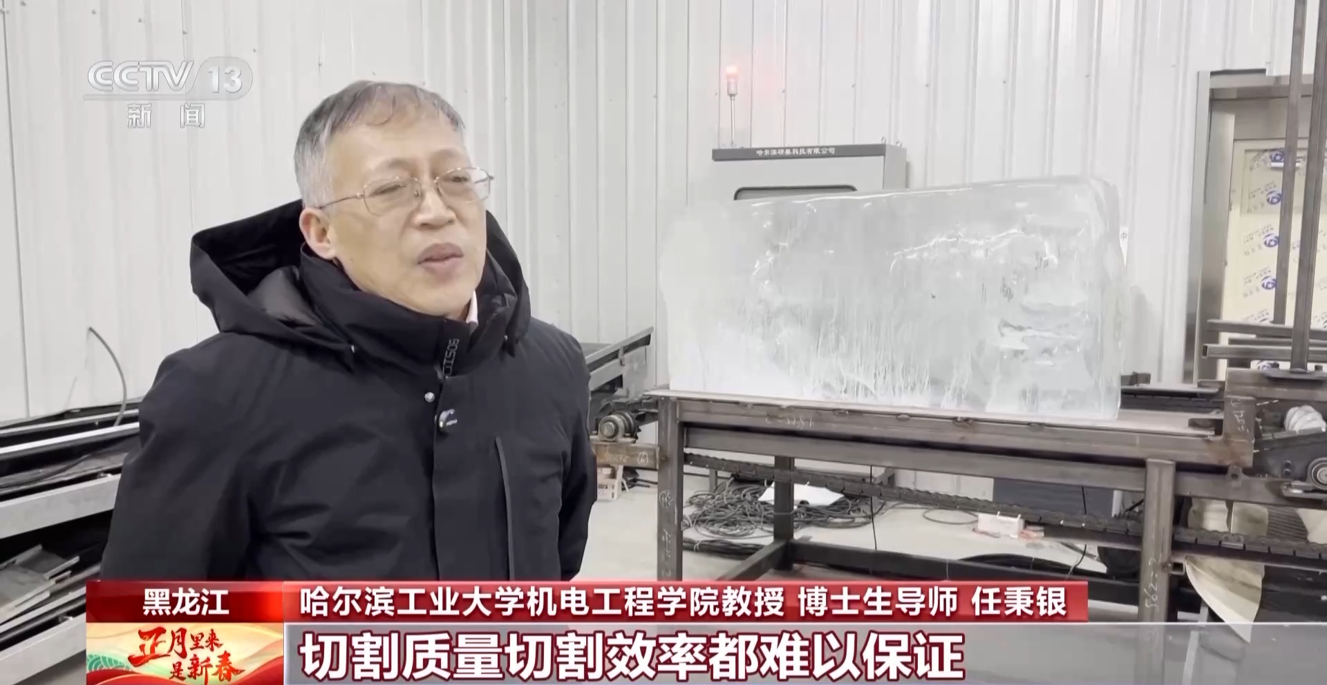 哈爾濱工業(yè)大學(xué)機電工程學(xué)院教授、博士生導(dǎo)師 任秉銀:這么多年來建冰雕設(shè)施用的冰一直都是人工在切,使用手工鋸,切割質(zhì)量切割效率都難以保證。在這種情況下,對智能自動化生產(chǎn)標(biāo)準(zhǔn)冰砌塊的需求十分迫切。