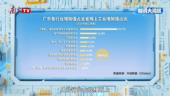 從各行業(yè)占規(guī)模以上工業(yè)增加值的比重來(lái)看,廣東的工業(yè)產(chǎn)業(yè)體系有三股強(qiáng)大支柱:傳統(tǒng)產(chǎn)業(yè)、新興產(chǎn)業(yè)、未來(lái)產(chǎn)業(yè)。