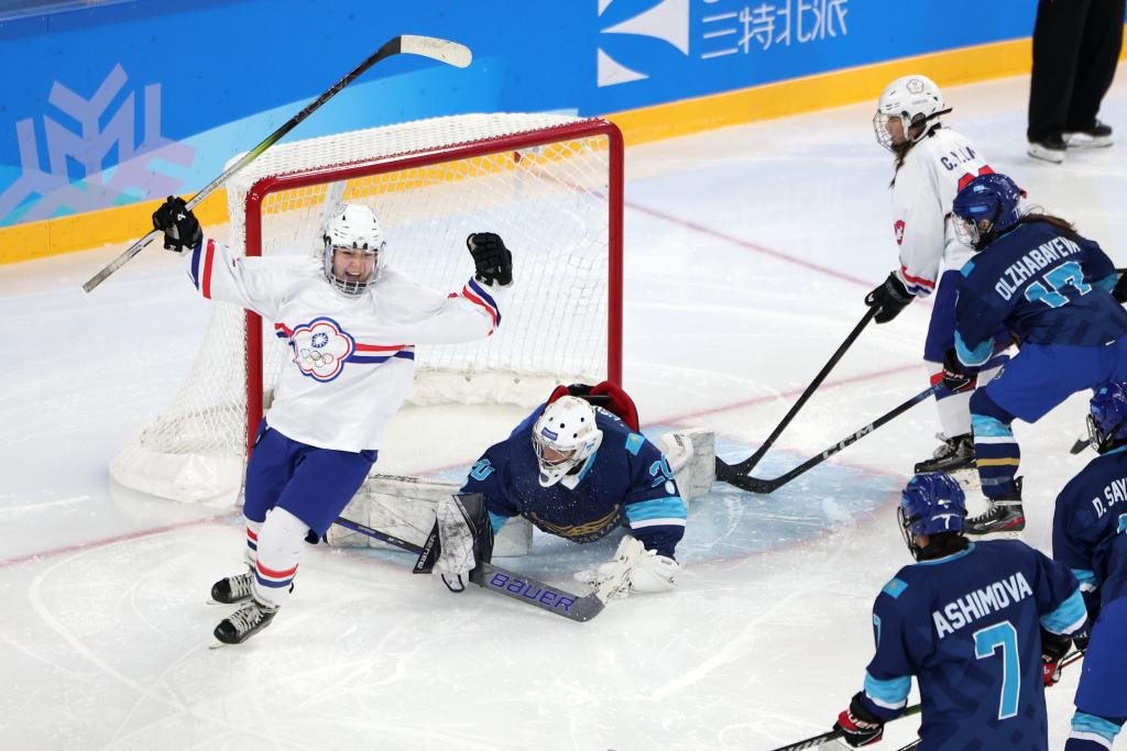 這里正在上演女子冰球B組一場(chǎng)焦點(diǎn)戰(zhàn),對(duì)陣雙方是中國(guó)臺(tái)北隊(duì)與哈薩克斯坦隊(duì),比賽開(kāi)場(chǎng)第五分鐘,中國(guó)臺(tái)北隊(duì)就打入一球,進(jìn)球的68號(hào)球員雙臂高高舉起,和隊(duì)友一起慶祝,觀眾席傳來(lái)的,是山呼海嘯般的歡呼聲。