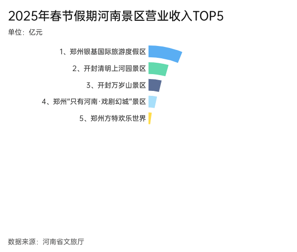 河南省文旅廳數(shù)據(jù)顯示,春節(jié)假期八天,全省營(yíng)收上億元的景區(qū)僅有兩家,分別是鄭州銀基國(guó)際旅游度假區(qū)1.43億元,開封清明上河園景區(qū)1.03億元。