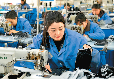 近日,在山東省濟寧市嘉祥縣的一家企業(yè)車間內(nèi),工作人員在縫制滑雪手套。作為中國重要的滑雪手套生產(chǎn)基地之一,嘉祥縣手套產(chǎn)品遠銷60多個國家和地區(qū)。新華社記者 郭緒雷 攝
