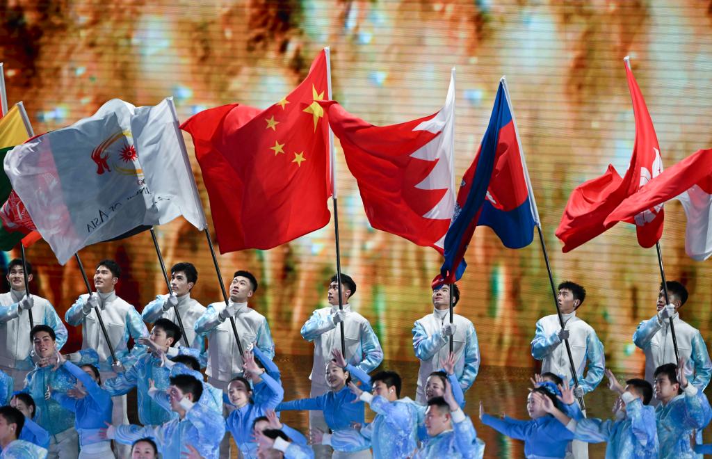 這是2月14日拍攝的各體育代表團(tuán)入場環(huán)節(jié)。當(dāng)日,第九屆亞洲冬季運(yùn)動會閉幕式在哈爾濱舉行。新華社記者 黃博涵 攝