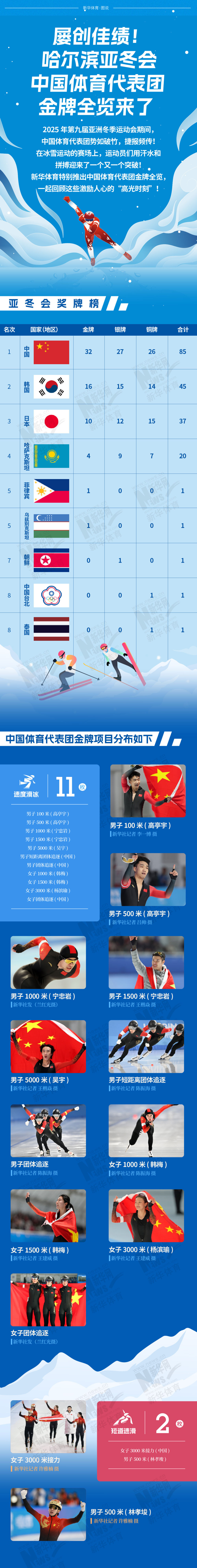 長圖|屢創(chuàng)佳績!哈爾濱亞冬會中國體育代表團(tuán)金牌全覽來了!