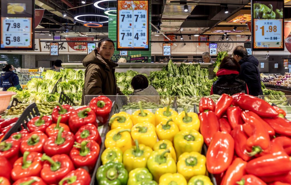 2月9日,消費(fèi)者在貴州省黔西市一家超市選購(gòu)蔬菜。新華社發(fā)(范暉攝)