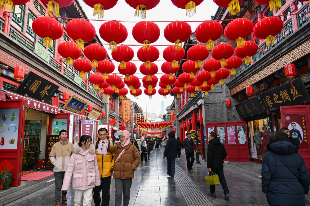 1月28日,游客在天津古文化街游覽。新華社記者 孫凡越 攝