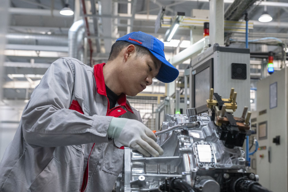 2月13日,工人在安徽省蕪湖市繁昌經(jīng)濟(jì)開(kāi)發(fā)區(qū)一家汽車核心部件生產(chǎn)企業(yè)生產(chǎn)線上忙碌。新華社發(fā)(肖本祥攝)