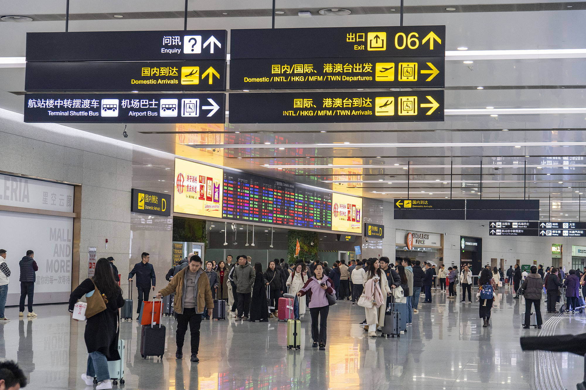 2025年2月16日,重慶江北國際機(jī)場,乘客人來人往。