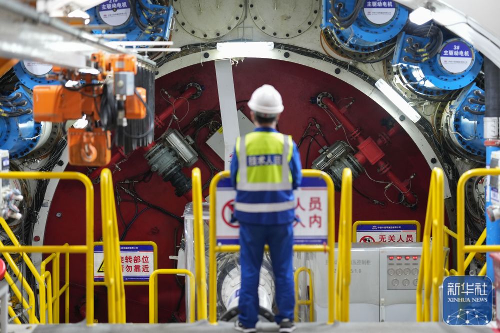 2月25日,中鐵十四局技術(shù)人員在甬舟鐵路金塘海底隧道“甬舟號(hào)”盾構(gòu)機(jī)內(nèi)關(guān)注設(shè)備運(yùn)行情況。