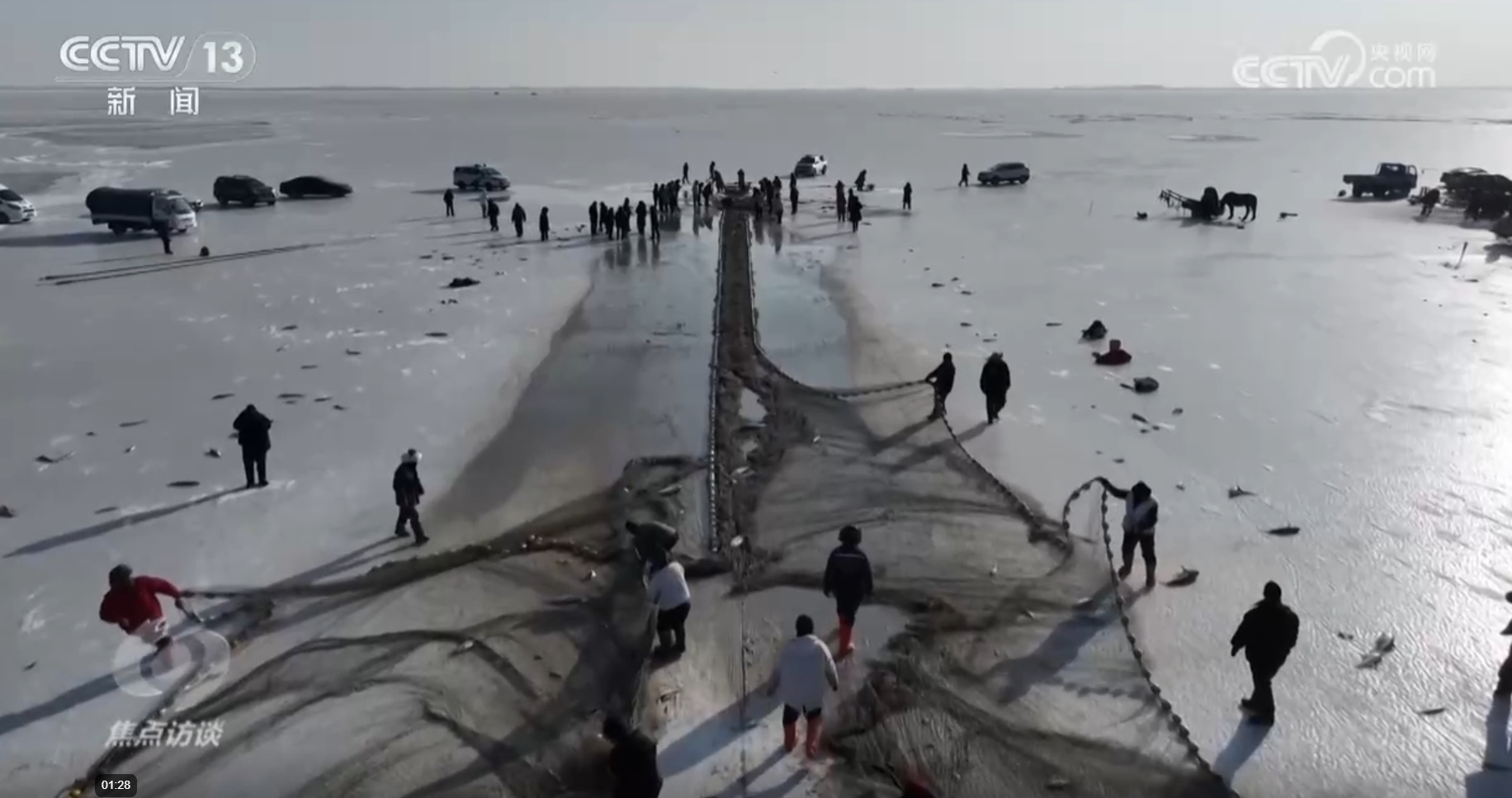 冰天雪地的查干湖,熱氣騰騰的冬季捕魚,一派豐收的景象。查干湖每年冬捕總量約為300萬(wàn)斤,壯觀的冬捕場(chǎng)景,不僅吸引著成千上萬(wàn)的游客前來(lái)參觀,也吸引了全國(guó)各地的消費(fèi)者,每天訂單就像雪片一樣從全國(guó)各地飛來(lái)。